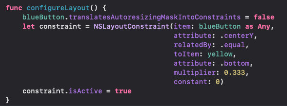 생성자를 이용해서 NSLayoutConstraint를 직접 생성한 다음 activate 시켜주면 된다.