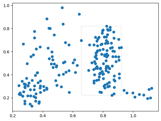 3. 클러스터링 결과 가장 높은 밀도의 군집이 위치하는 영역을 잘라낸다.