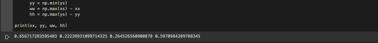 계산한 바운딩 박스를 출력하여 확인해보면 아래와 같다. 이것이 잘 계산된 것인지 plot으로 확인해 보자.