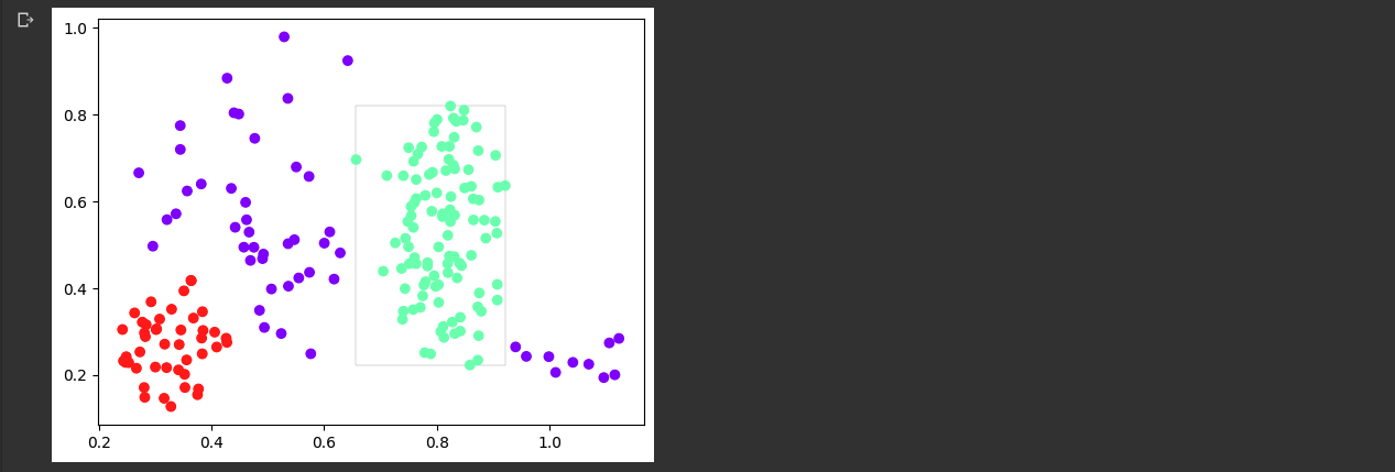 실행 결과 가장 큰 클러스터(초록)에 맞게 바운딩 박스도 잘 계산된 것을 확인할 수 있다.