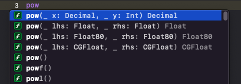 let resultOfPow = pow(3.0, 2.0) // 9.0