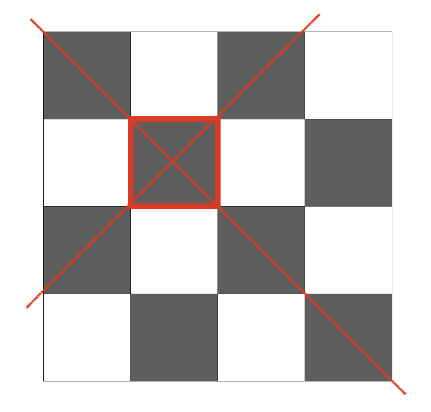 비숍은 대각선으로만 이동이 가능하다. 따라서 체크무늬로 색칠된 체스판에서 검은색 칸에 위치한 비숍은 절대 흰색 칸으로 이동할 수 없다. 반대도 마찬가지이다. 따라서 검은색 칸에 놓을 수 있는 비숍의 최대 개수 + 흰색 칸에 놓을 수 있는 최대 개수를 따로 구해서 더해주면 시간을 줄일 수 있다.