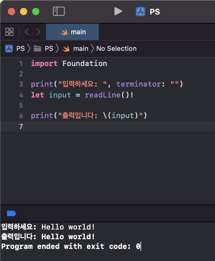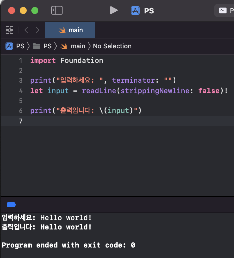 Swift에서 사용자 입력을 받는 함수는 readLine()이다.